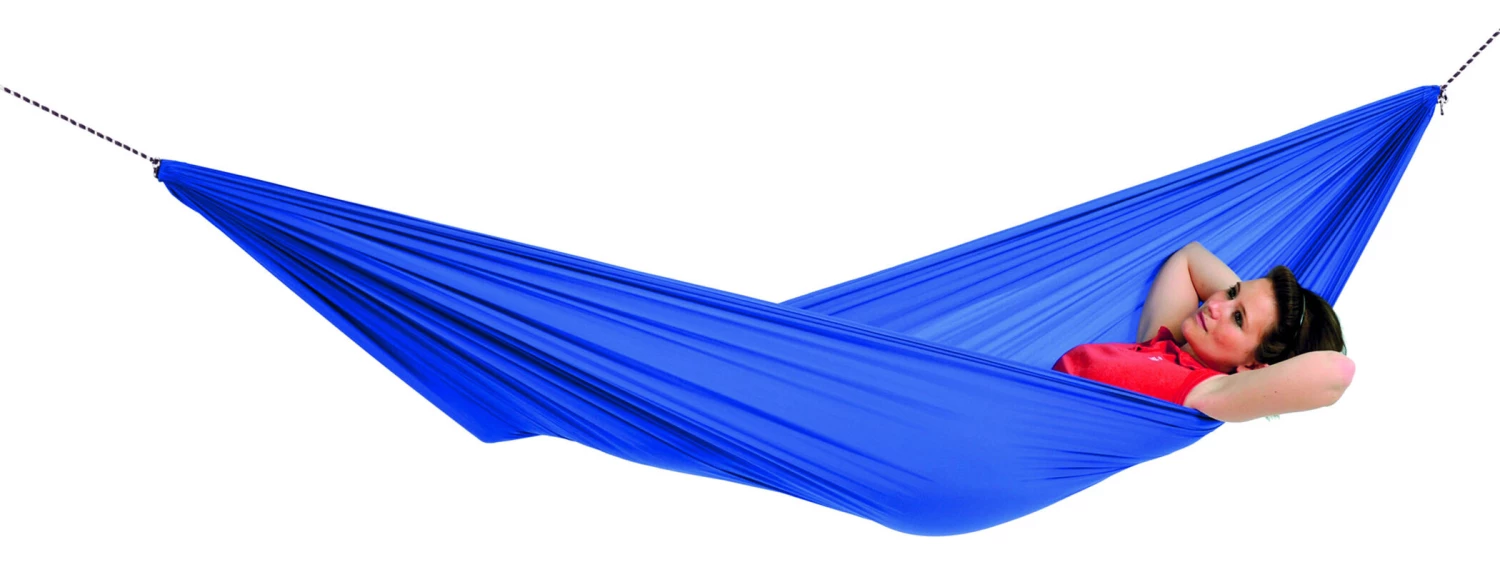 La solution tout-en-un réglable ! Le hamac extra large et léger avec corde et crochet intégrés. Il suffit d’enrouler la corde plusieurs fois autour d’un arbre de chaque côté et de l’attacher avec le crochet. Prêt !