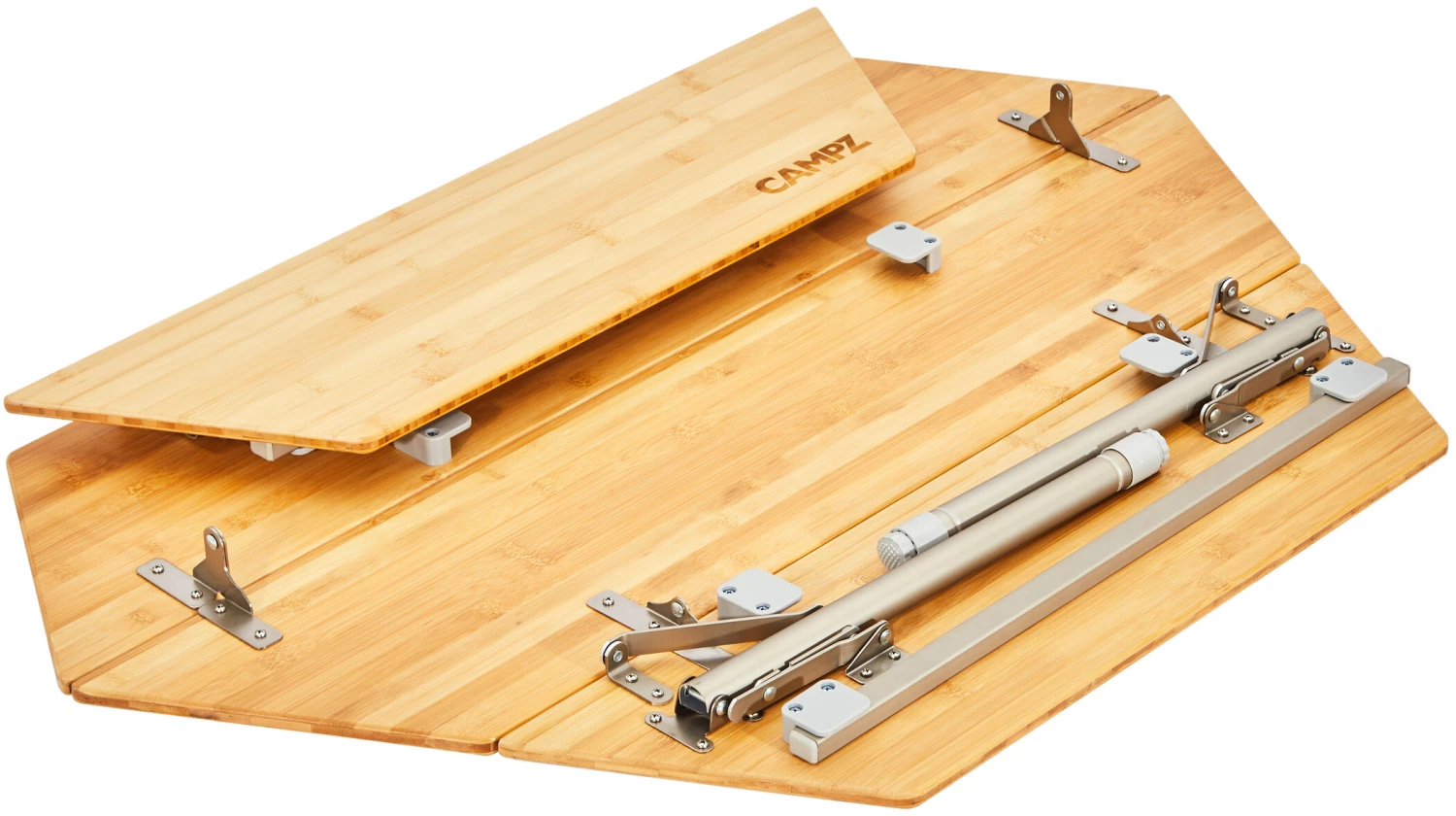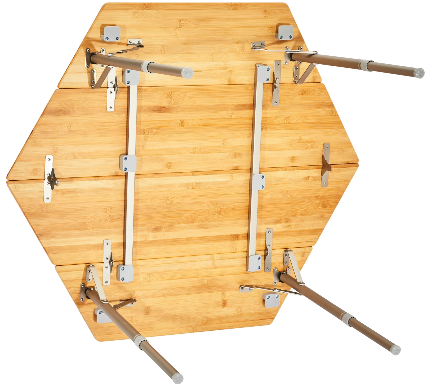 Table pliante Hexa CAMPZ en bambou – Table pliante pratique pour la route et la maison