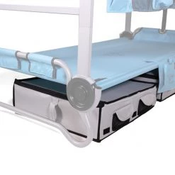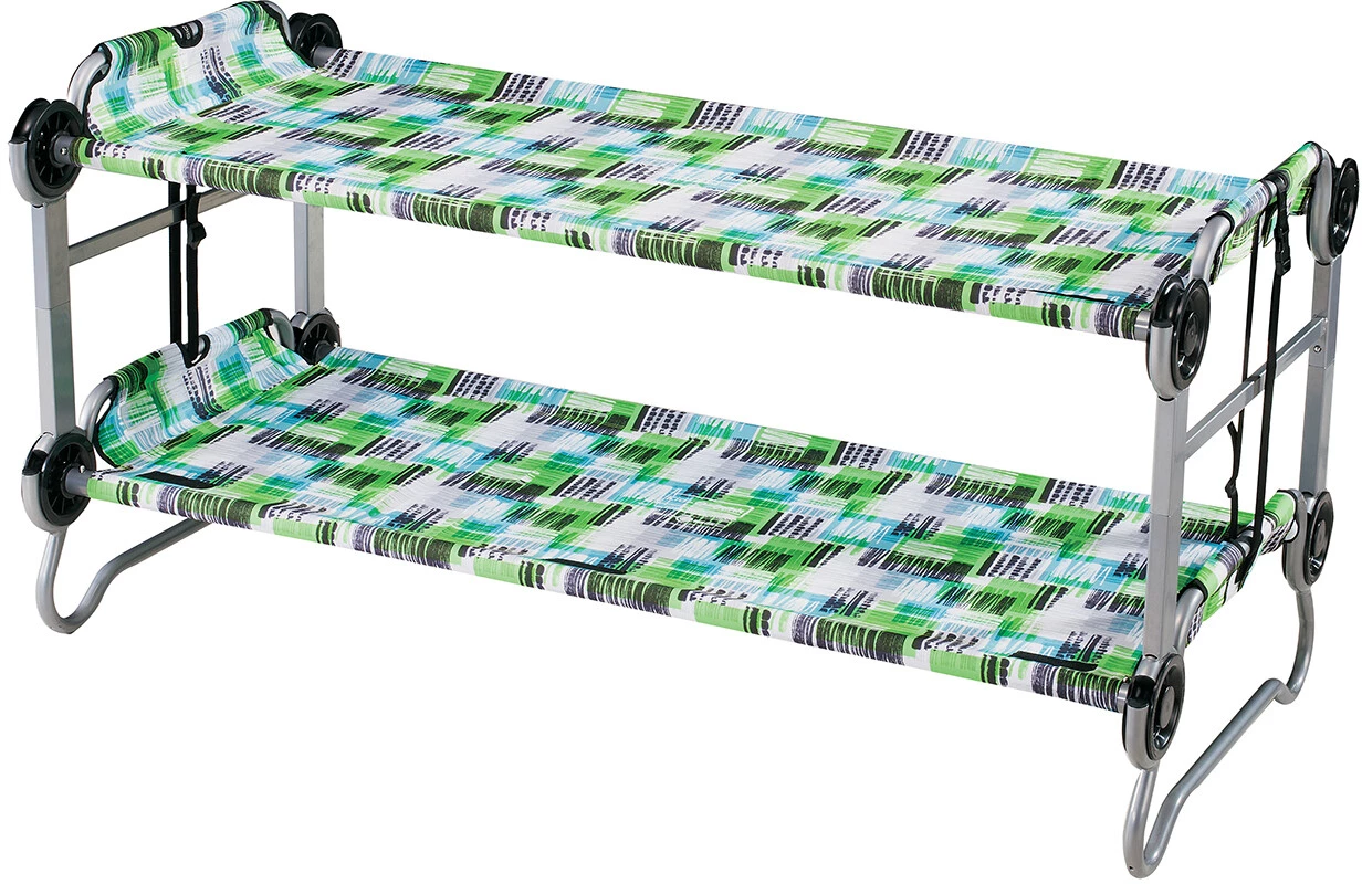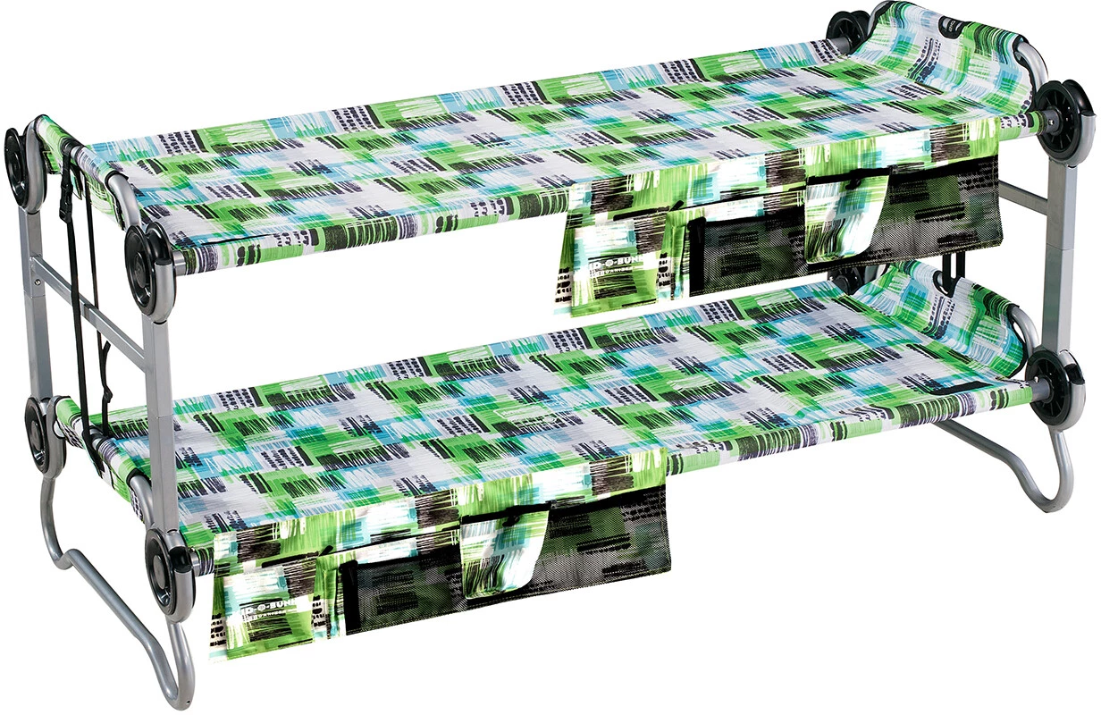 Parfait pour les voyages en camping, les soirées pyjama ou les visites aux grands-parents : Le Kid-O-Bunk est le lit superposé idéal pour les enfants aventureux âgés de 7 à 12 ans. Le Kid-O-Bunk est facile et rapide à assembler sans aucun outil grâce au système de disques modulaires. Il est également très confortable et flexible à utiliser. Utilisez les lits comme deux lits simples pour une nuit sous les étoiles ou comme lits superposés pour gagner de la place dans la tente. Les tapis peuvent être facilement retirés et nettoyés. Vos enfants vont adorer le Kid-O-Bunk !