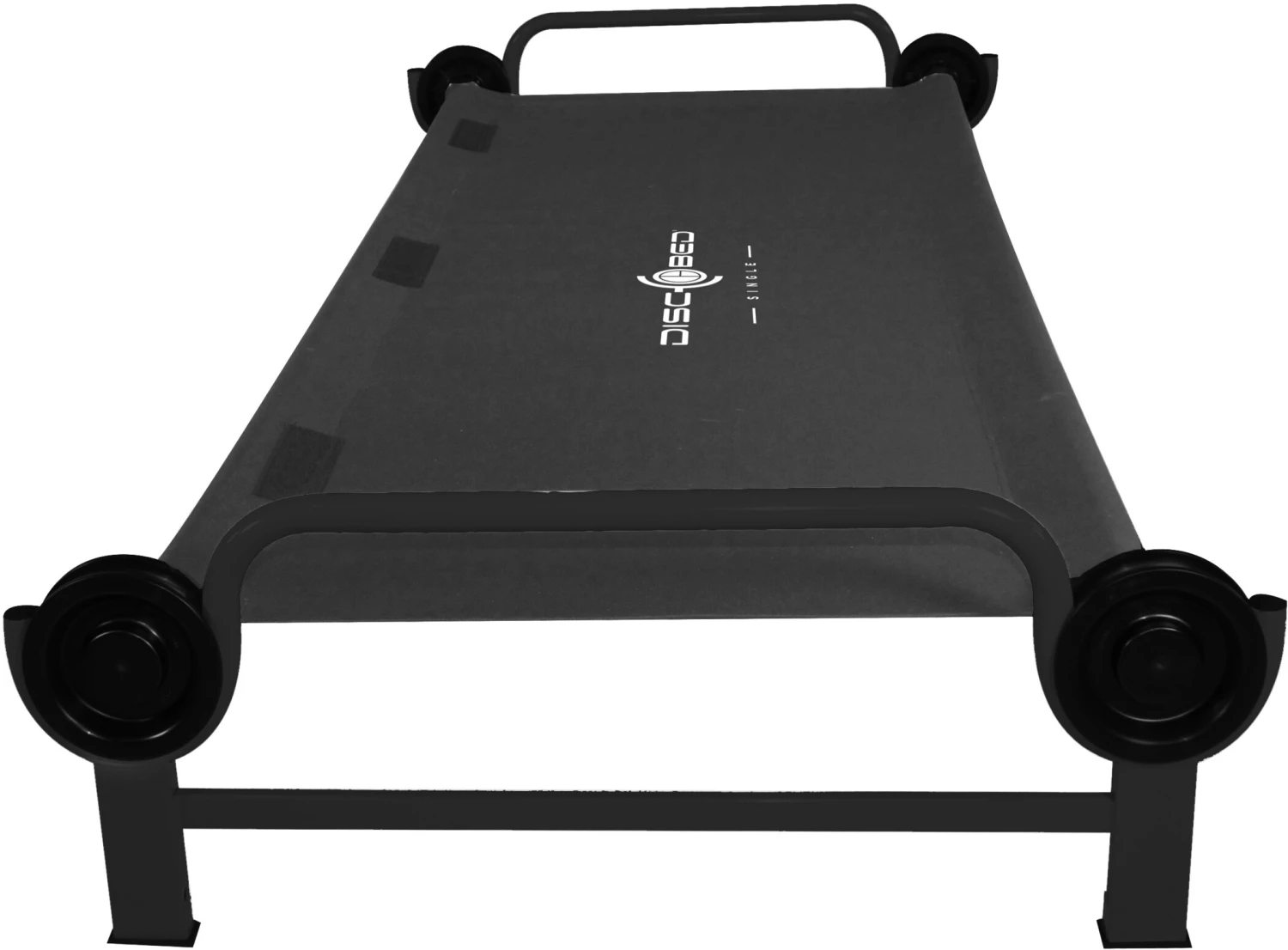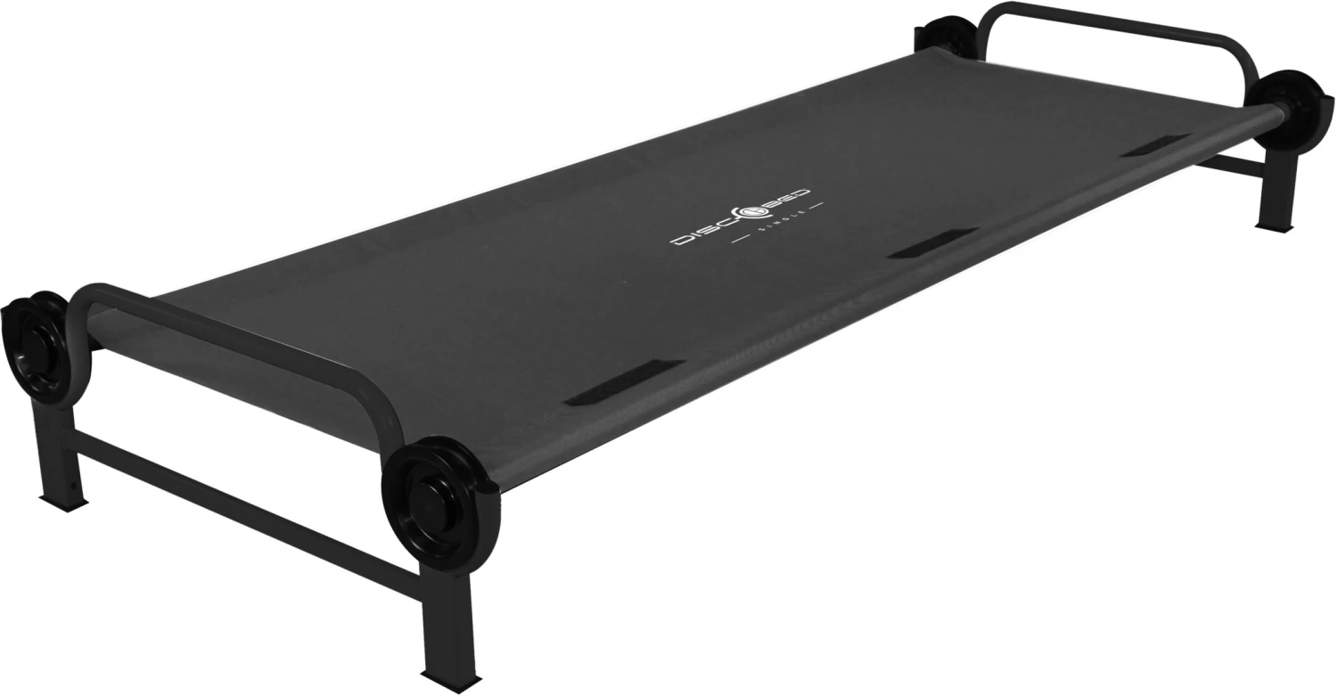 Profite d’une nuit à la belle étoile avec le confortable Disc-O-Bed Single L ! Grâce à sa petite taille de rangement, il est facile à transporter et à stocker – tout en étant tout aussi robuste et durable. Le lit simple pratique peut être monté ou démonté en un rien de temps, sans aucun outil. Pour encore plus de luxe, tu peux équiper ton lit d’une poche latérale assortie ou d’une moustiquaire avec cadre – ainsi, ton voyage en camping sera une expérience inoubliable. Le Disc-O-Bed Single L peut être agrandi avec un deuxième Single L et un kit Bunk supplémentaire pour devenir un lit superposé ou une banquette.