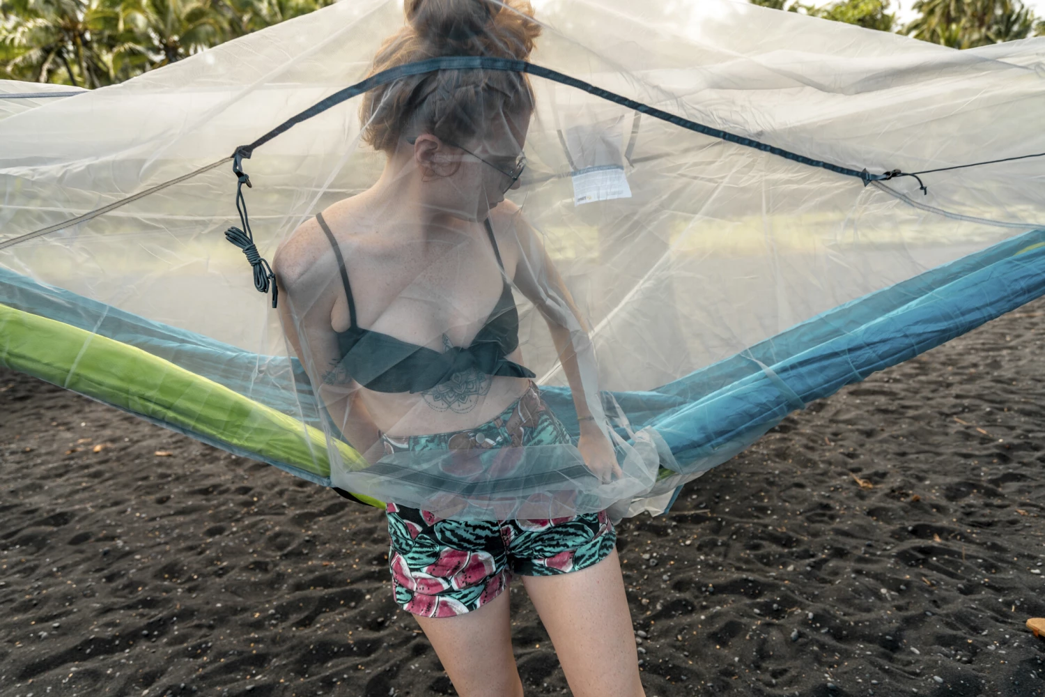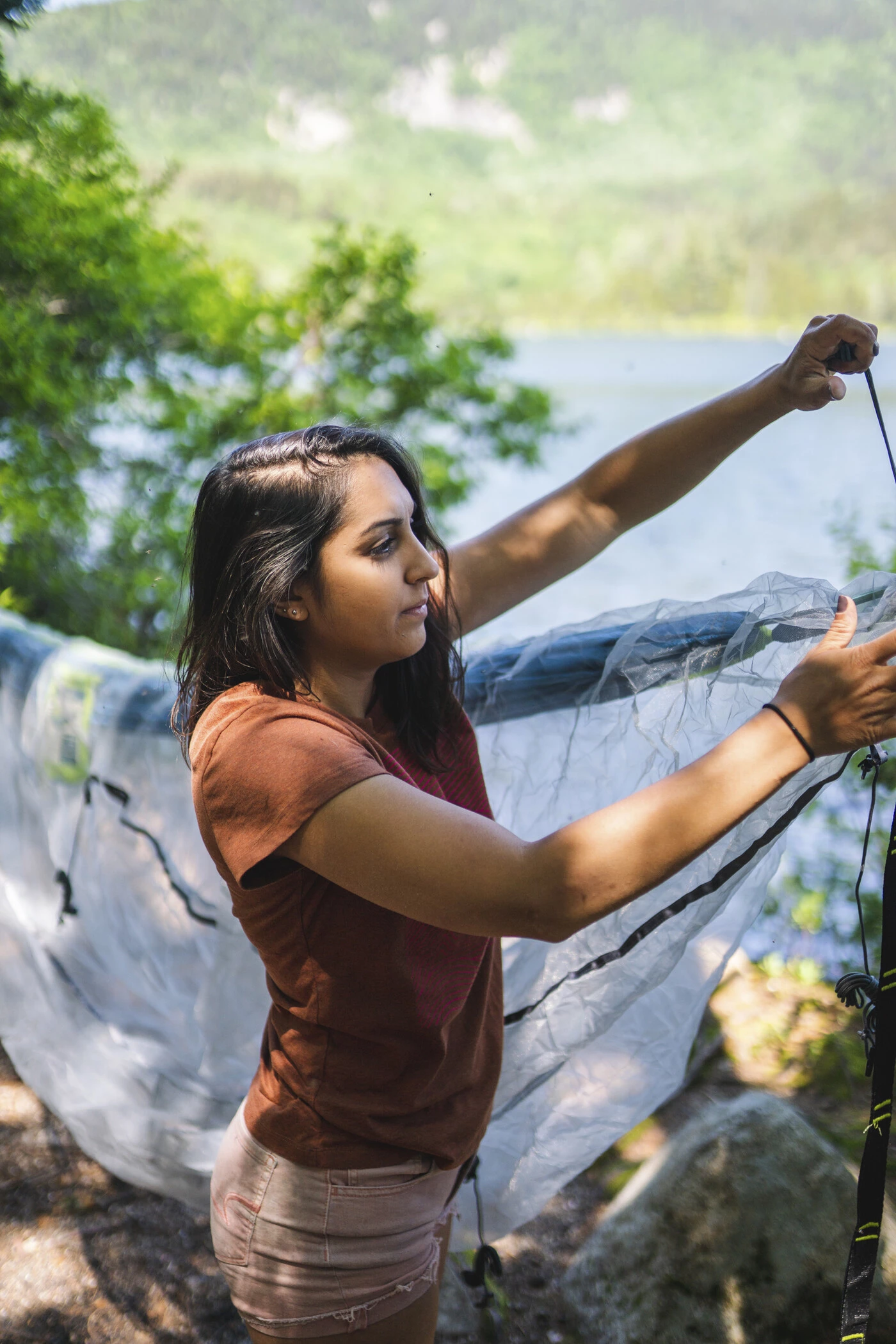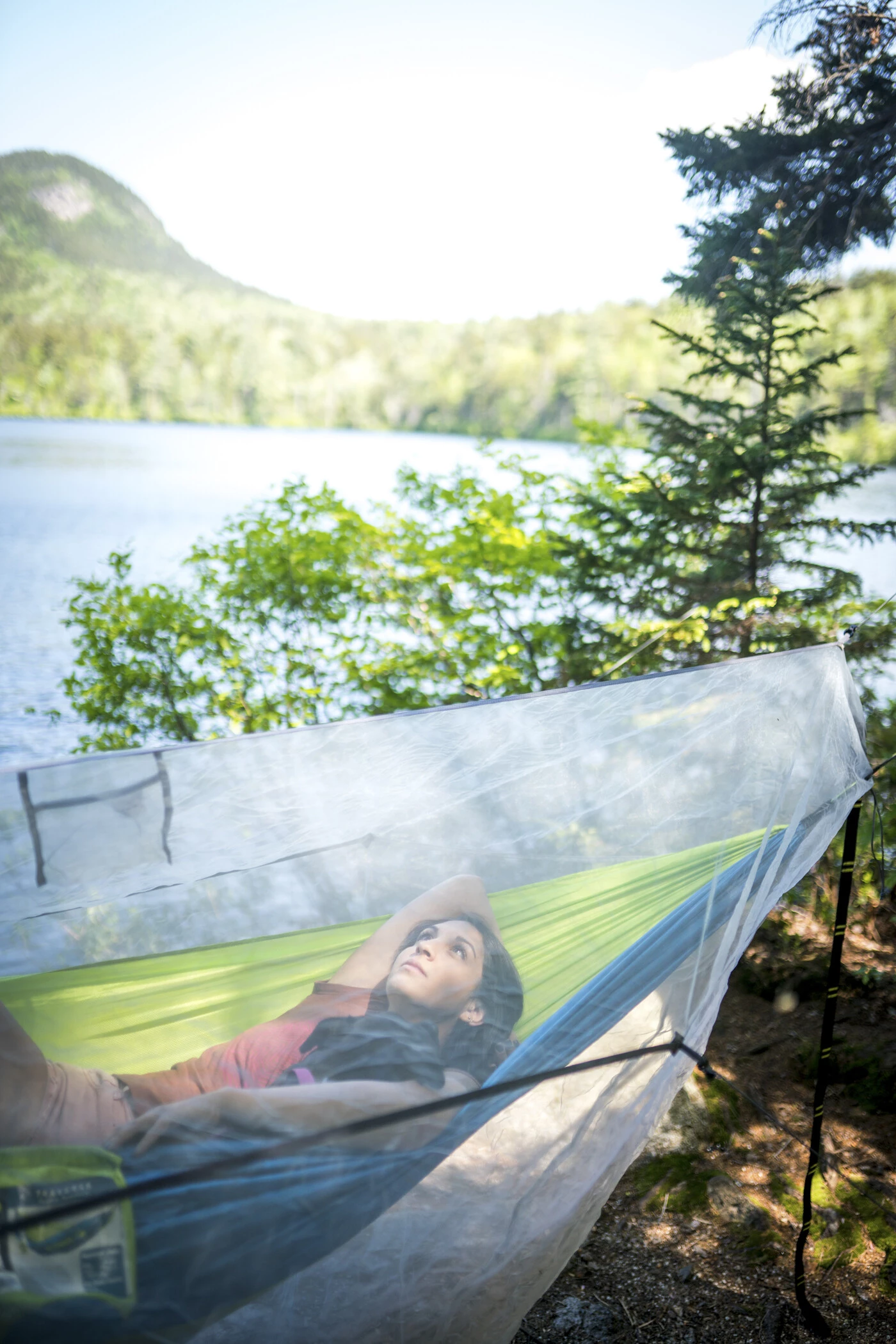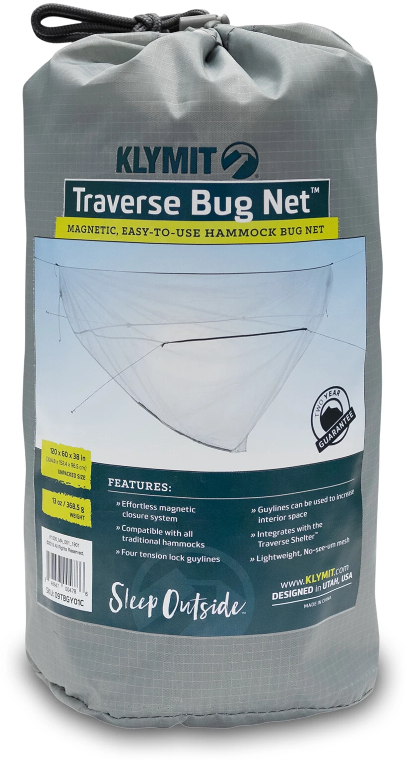 Le filet anti-insecte Traverse de Klymit est doté d’une fermeture à glissière magnétique, la meilleure du secteur. La fermeture à glissière facile à utiliser se referme derrière vous lorsque vous entrez et sortez, afin de garantir que les insectes restent à l’extérieur. En outre, la moustiquaire contient quatre points d’ancrage fixés par tension qui créent un espace intérieur plus grand. La moustiquaire s’intègre au hamac Traverse et à l’abri Traverse de Klymit, mais elle est conçue pour être compatible avec tout hamac de camping.