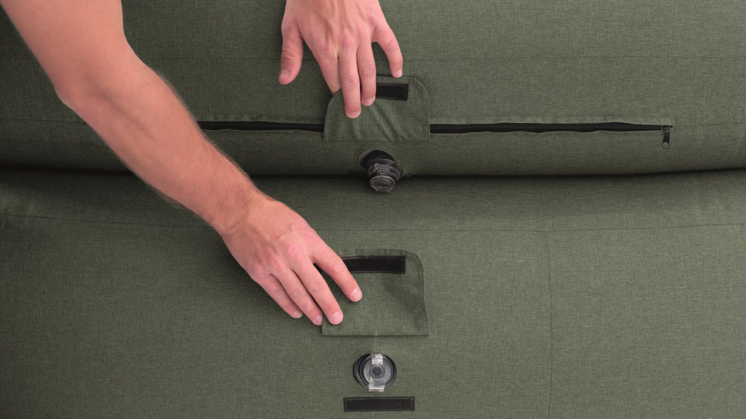Le canapé gonflable Aberdeen Lake est particulièrement confortable et son encombrement est réduit. La couleur vert foncé, les accoudoirs arrondis et le dossier vous invitent à vous détendre.